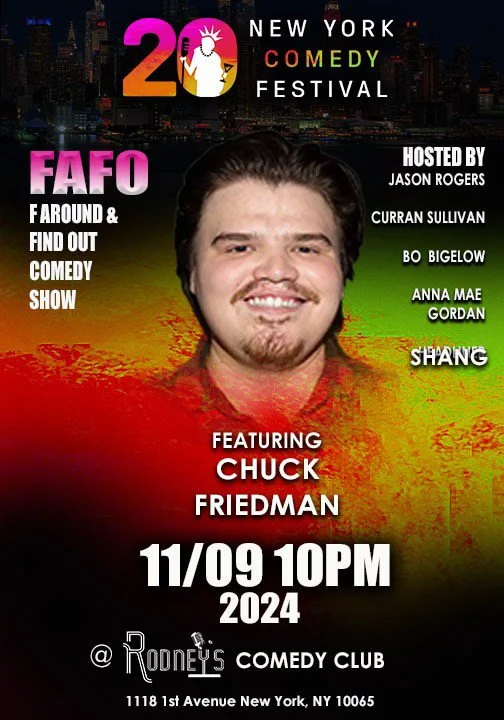 Chuck Friedman is a stand up comedian as seen at The Comedy Store, Hollywood Improv and Gotham Comedy Club. He also featured in NY Comedy Fest (2024). His comedic style blends sharp wit with absurd storytelling.