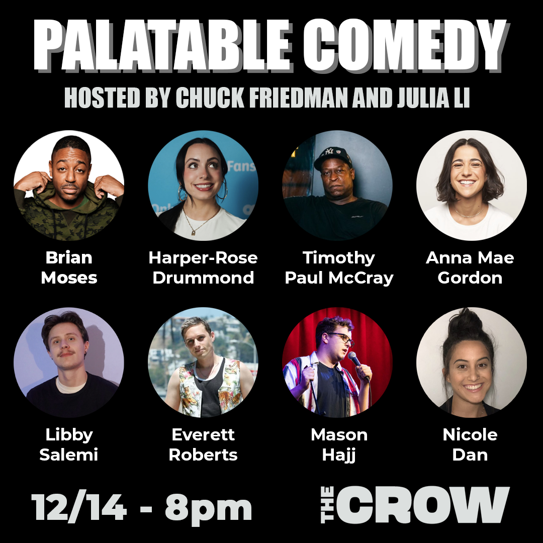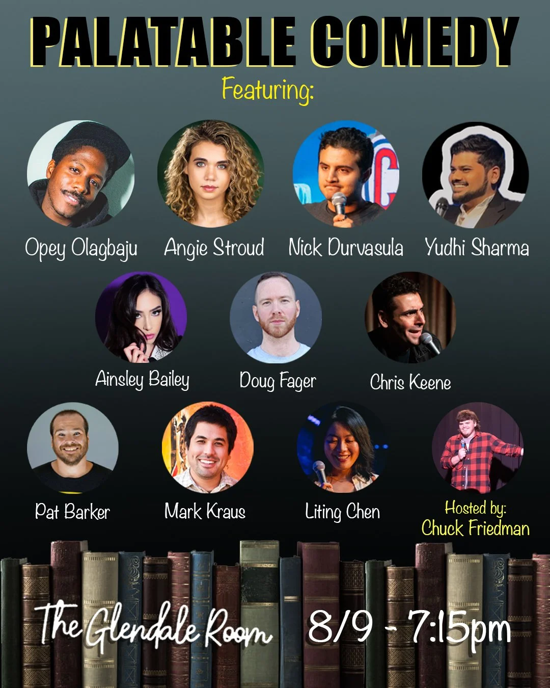 Chuck is the creator and co-producer of Palatable Comedy, a monthly comedy show live from Santa Monica. The show has hosted comedians from Netflix, NBC, Comedy Central, Hulu, Amazon Prime and more.